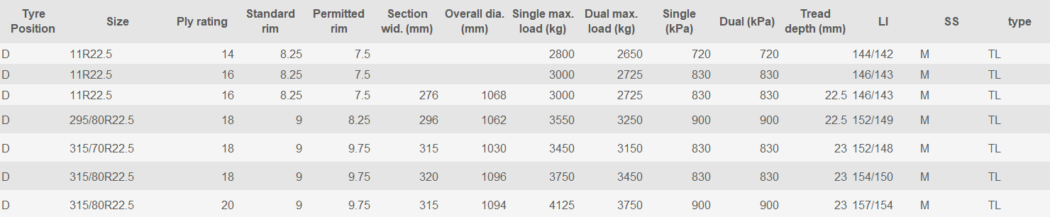 The Windpower WDR37 is a drive axle tyre that provides excellent traction in regional applications. It particularly excels at low noise and rolling efficiency due to it’s dense, lug pattern. The WDR37 can handle mild or occasional off-road use.