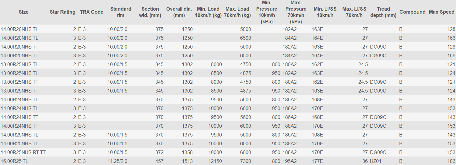 The WE33 features an aggressive, self-cleaning, non-directional tread design that delivers high traction in demanding applications such as mines and rock /sand yards. The combination of transverse and circumferential grooves provides excellent lateral traction while maintaining superior flotation characteristics.