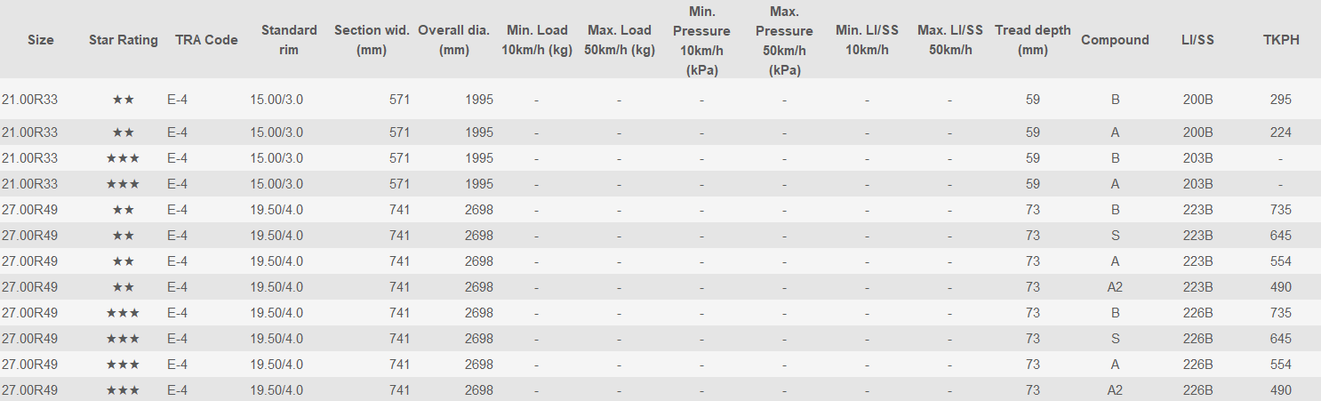 The WE46 has a special tread compound that provides excellent cut and wear resistance without compromising on traction. It features excellent self-cleaning capabilities and is suited for heavy dump trucks in mines and coal yards.